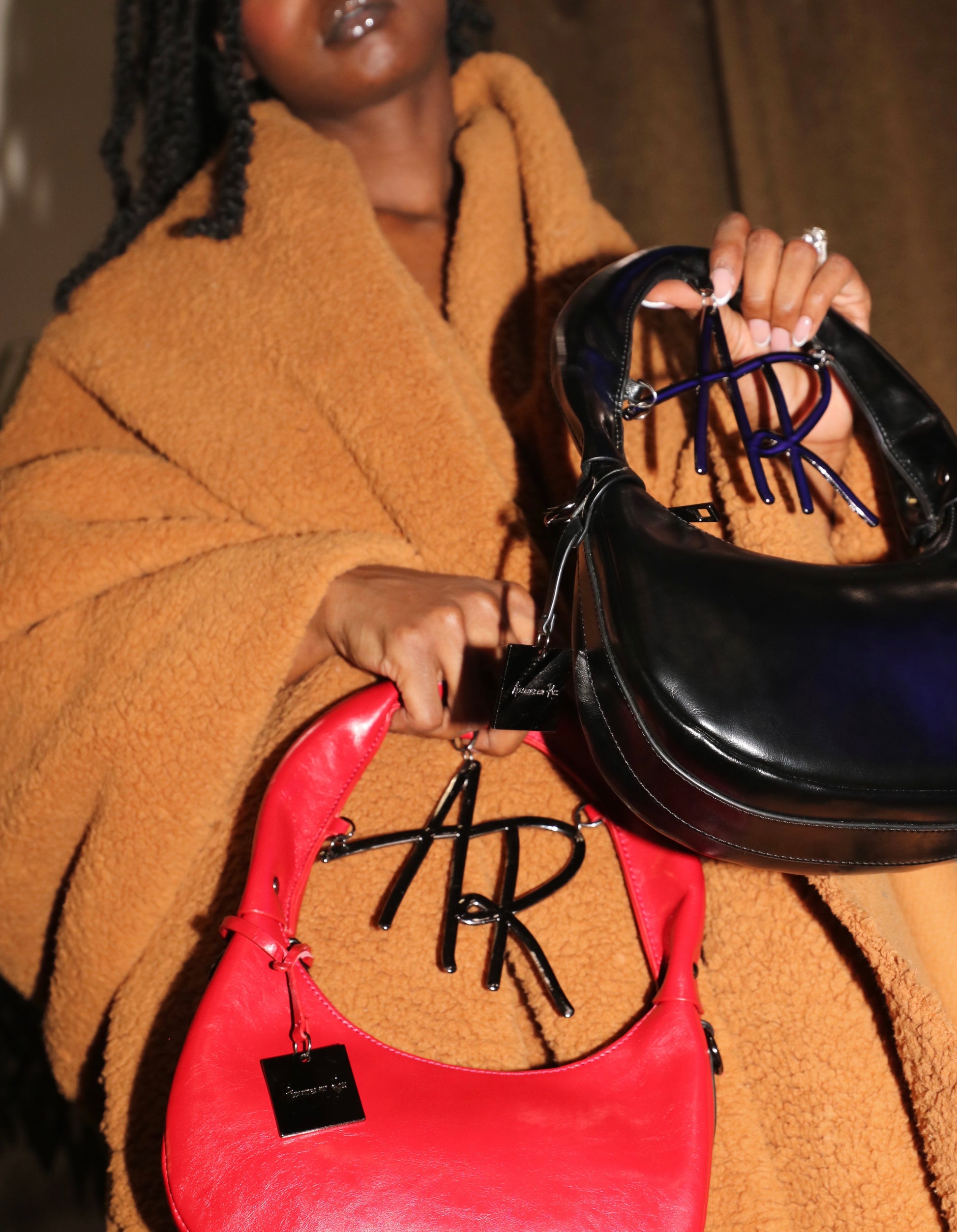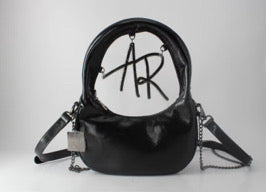 Our signature logo bag is crafted from genuine leather and has been rigorously quality tested for over a year. Designed for versatility, it can be worn as both a handbag and a crossbody. It comes with two thoughtfully designed strap options: a full leather strap for a classic look and a high-quality metal chain strap with a leather shoulder detail for added comfort. The straps are intentionally different lengths, allowing you to wear them together for a stylish, edgy touch to your everyday looks.